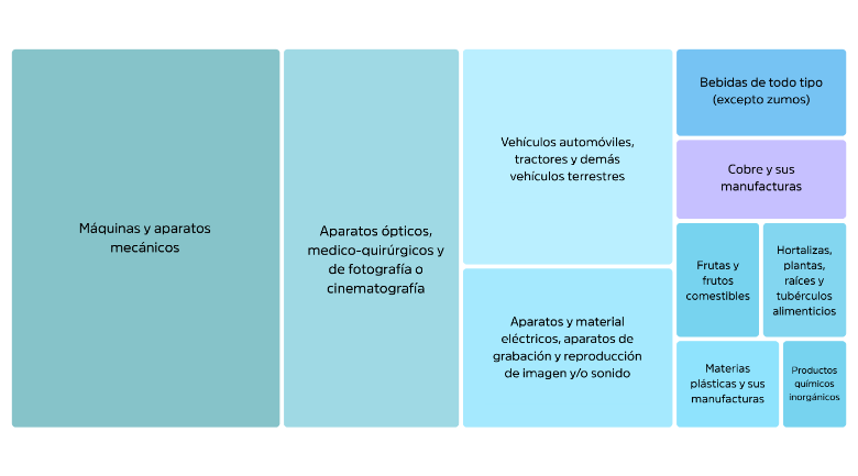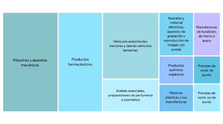 Dentro de la categoría de Máquinas y aparatos mecánicos, los productos más exportados de México a España fueron las unidades de memoria, elementos que se utilizan para el tratamiento o procesamiento de datos.